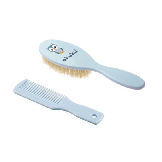 Bezpieczna i delikatna szczotka do czesania dziecięcych włosów wykonana z naturalnego włosia w zestawie z grzebieniem. Miękkie włosie idealnie nadaje się do pielęgnacji delikatnych włosków niemowlaka, a dzięki właściwościom antystatycznym nie elektryzuje ich. Grzebyk natomiast posiada zaokrąglone końce, przez co chroni delikatną skórę dziecka. Dostępna w dwóch kolorach: niebieska i biała.