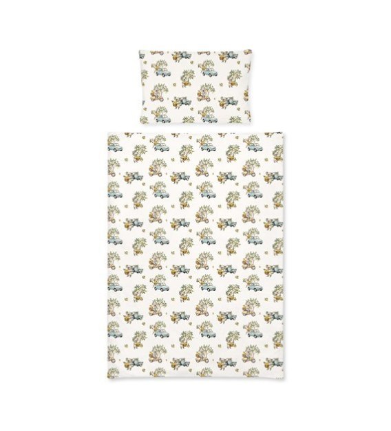To zestaw poszwy na kołdrę i poszewki na poduszkę. Uszyta z bawełny satynowej, tkaniny wykonanej w 100% z włókien naturalnych. Materiał ten dzięki swojej strukturze utrzymuje ciepło, chłonie wilgoć, a przy tym jest miły i delikatny dla skóry. Bawełna satynowa jest odpowiednia dla alergików. Nadruk na tkaninach jest nadrukiem ekologicznym, bezpiecznym dla najmłodszych.