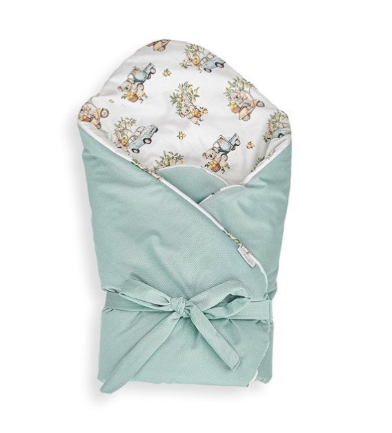 Ten praktyczny i wielofunkcyjny produkt zapewnia komfort oraz pełne bezpieczeństwo dla skóry dziecka. Double gaze to materiał, który charakteryzuje się podwójną warstwą tkaniny połączoną ze sobą, która tworzy wyjątkową lekką i oddychającą strukturę. Dzięki temu rożek jest przyjemny w dotyku, niezwykle delikatny dla skóry dziecka. Rożek ma wszyte antyalergiczne wypełnienie, które w doskonały sposób izoluje ciepło i przepuszcza powietrze. Rożek nie posiada dodatkowego usztywnienia, dzięki temu zapewnia utrzymanie naturalnej i wygodnej dla noworodka pozycji. Wiązany na kokardę, pozwala na indywidualne dopasowanie rozmiaru rożka do wymiarów i potrzeb niemowlaka.