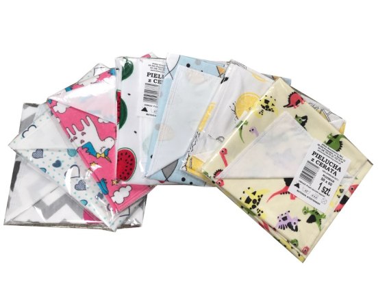 Praktyczna, wielorazowa pielucho-ceratka. Wierzchnia strona wykonana z kolorowej miękkiej i miłej w dotyku flanelki (100% bawełna). Spodnia strona to delikatna nieprzemakalna oddychająca ceratka. Pielucho-ceratkę można wielokrotnie prać w pralce bez obawy, że się zniszczy. Są bezpieczne dla dziecka i bardzo wytrzymałe. Przydatne już od narodzin dziecka. Idealna do przewijania niemowlęcia, do zabezpieczenia materacyka w wózku przed zamoczeniem itp. Niezastąpiona na wyjścia poza dom, bardzo przydatna wszędzie tam, gdzie nie można zabrać ze sobą przewijaka. Stosowana jako podkład w szpitalu. Nieprzemakalna dzięki wysokiej jakości ceratce.Cieplutka, puszysta i mięciutka. Flanela bawełniana używana do produkcji pieluszek- nie zawiera żadnych szkodliwych ani toksycznych substancji. Ze ślicznymi nadrukami, kolory oraz dziecięce motywy przyciągają uwagę.