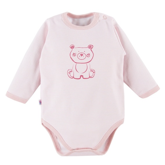 Różowe body dziecięce w paseczki z misiem. Body dziecięce sprawdzą się idealne na mniejsze dzieci. Świetnie sprawdzą się również zimą dla dzieci do 2 roku życia. Mamy najczęściej wybierają body dla swoich maluszków. Jest to must have każdej wyprawki niemowlęcej czy przedszkolnej.