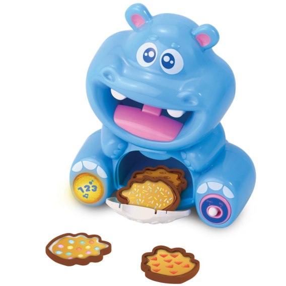 Kiedy Dziecko naciśnie na stópkę rozpocznie zabawę w liczenie oraz usłyszy zabawne dźwięki i melodie. Nakarm Hipcia i policz ile jest w stanie zjeść ciasteczek. Po wyjęciu ciasteczek z brzuszka rozpoczynamy zabawę od nowa.
