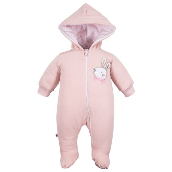 Kombinezon dziecięcy różowy wykonany z bawełny i wypełnienia antyalergicznego. Kombinezon dziecięcy posiada kaptur. Podszewka w kombinezonie wykonana jest w 100% z bawełny. Pajacyk z kapturem będzie idelany na wyjście ze szpitala w chłodne miesiące. W wyprawce dla dzieci rodzących się zimą i jesienią to obowiązkowy element.