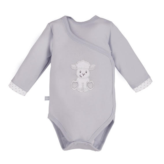 Body zakładane z długim rękawem z kolekcji "Newborn" w pięciu wersjach kolorystycznych uszyte z miękkiej i przyjemnej w dotyku dzianiny. Z przodu znajduje się haft wesołego zwierzątka, zabezpieczony od wewnątrz, tak aby nie podrażniał delikatnej skóry dziecka. Krój umożliwia całkowite rozpięcie, przez co ubranko jest funkcjonalne i wygodne. Idealne w pierwszych miesiącach życia maluszka. Wykończone miękką lamówką. Rękawki zakończone są mankietami drukowanymi w delikatny wzór. Napki użyte w naszych wyrobach nie zawierają niklu.