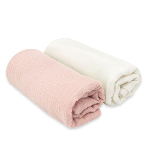 KIECZMERSKI Pieluszki 75x75 +/- 3 cm MUŚLIN BAWEŁNIANY bawełna 100% śmietanka/pudrowy róż 2-pak