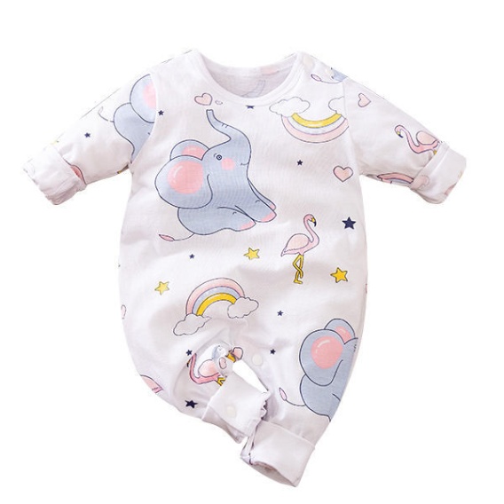 PASTELOWE SŁONIKI to lekki pajacyk - piżamka, ze 100% bawełny.