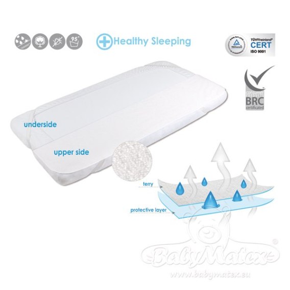 Wierzchnia warstwa wykonana z miękkiej tkaniny frotte zapobiegającej podrażnieniom sktóry, natomiast spodnia warstwa podkładu, wykonana jest z oddychającej membrany poliuretanowej. Nie przepuszcza płynów, chroniąc materac przed zmoczeniem. Dostępny w dwóch rozmiarach.