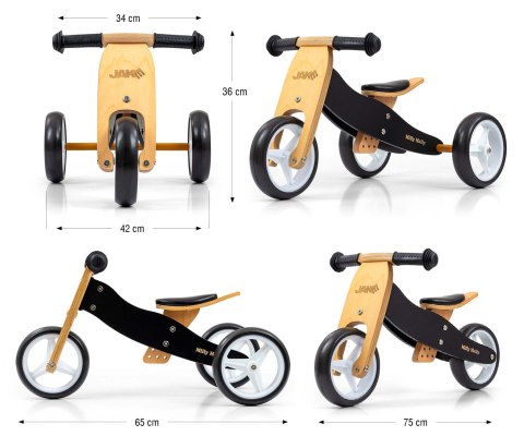 Rowerek JAKE jest idealnym rozwiązaniem dla maluszków, które dopiero rozpoczynają naukę jazdy na rowerku i jeszcze nie potrafią utrzymać równowagi na dwóch kółkach, ale chcą już samodzielnie się przemieszczać. Szerokie rozstawienie kółek zapewni niezwykłą stabilność, bezpieczeństwo i komfort jazdy zarówno w domu jak i na zewnątrz, np. w ogrodzie, a lekka i jednocześnie wytrzymała konstrukcja, sprawdzi się w każdych warunkach. Natomiast piankowe koła zapewniają komfort toczenia i nie męczą naszego kierowcy.