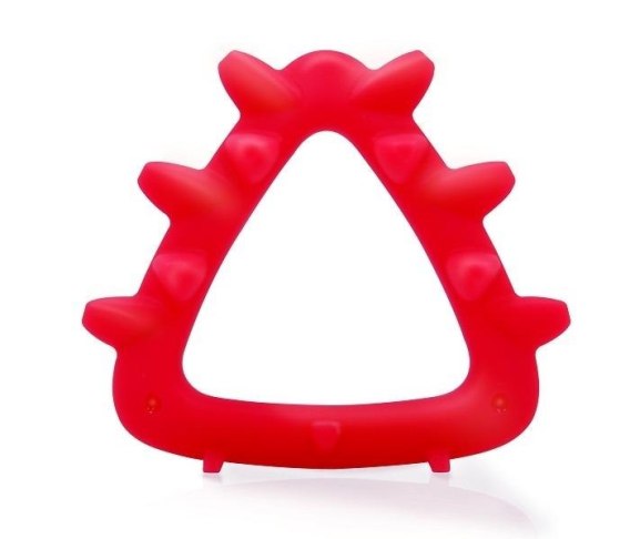 Gryzak silikonowy o geometrycznym kształcie przypominający kształtem jeża, został zaprojektowany z myślą o najmłodszych. Gryzak odznacza się wyraźnym czerwonym kolorem, który przyciagnie wzrok dziecka, zachęca do gryzienia i zabawy. To podstawowy kolor który dziecko potrafi rozróżnić (z wyjątkiem czarno-białych). Ponadto gryzak jest przyjemny w dotyku i jest najtwardzy wśród gryzaków geometrycznych. Kolce na Jeżu stymuluje u dziecka zmysł dotyku, a do tego masuje delikatne dziąsełka i łagodzą ból podczas ząbkowania. Wyprofilowany kształt gryzaka i odpowiedni rozmiar umożliwia dziecku chwytanie. Dodatkowo maluch już we wczesnym wieku może nauczyć się podstawoego kształtu geometrycznego takiego jak trójkąt. Gryzak jest bezpieczny i łatwy w gryzieniu nawet po ochłodzeniu. Można używać go w zmywarce, mikrofalówce, a także przechowywać w zamrażarce.