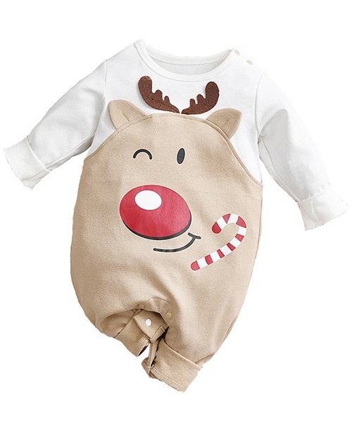 Radosny, świąteczny pajacyk niemowlęcy z wizerunkiem renifera. Ubranko jest na tyle uniwersalne, że można założyć je przez całą zimę, nie tylko na świąteczne dni. Sprawdzi się i dla chłopców, i dla dziewczynek.