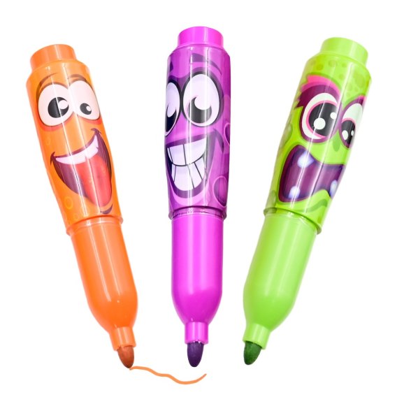 Wesołe buźki i pachnąca zawartość! Zestaw trzech grubych markerów zapewni podwójną przyjemność z pisania i rysowania. Markery różnią się zarówno kolorem, buźką, jak i zapachem. Każdy z nich nawiązuje do zapachu innego owocu.