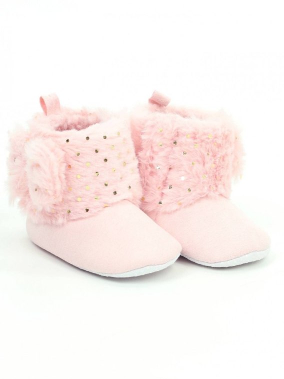 Środek bucika wyłożony jest delikatnym futerkiem, które nie tylko ogrzeje stopy ale zapewni im wygodę. Buciki są bardzo lekkie, mięciutkie i elastyczne, gwarantują komfort noszenia.