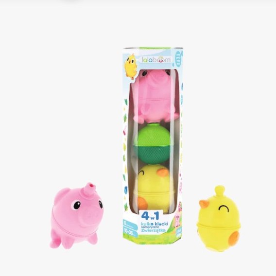 Zestaw kulko-klocków - zwierzątka farma: świnka, kurczaczek - 6 elementów to edukacyjna zabawka preznaczona dla dzieci od 10. miesiąca życia. Zestaw Lalaboom to nie tylko dobra zabawa, ale również wartościowy rozwój od najmłodszych lat. W opakowaniu znajdziesz 6 elementów, które można łączyć, rozdzielać, skręcać i rozkręcać.