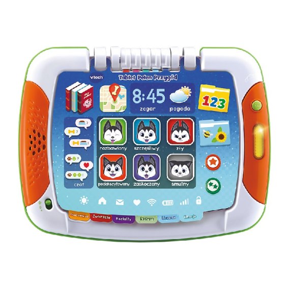Tablet Pełen Przygód marki VTech, to interaktywna zabawka edukacyjna wspierająca procesy poznawcze, przeznaczona dla dzieci w wieku od 2 do 5 lat. Zabawka została wyposażona w dwanaście interaktywnych stron – sześć stron z opowiadaniami i sześć stron z zadaniami do wykonania.