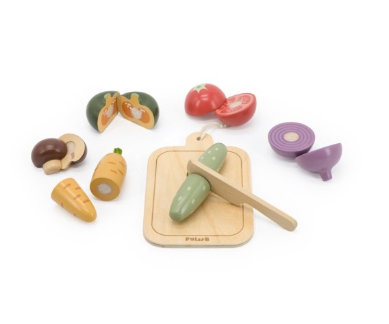 Zestaw do krojenia na desce- warzywa dla kucharzy spodoba się chłopcom i dziewczętom w wieku przedszkolnym. Drewniane warzywa pozwalają urozmaicić gry fabularne, uzupełnić zabawkowe kuchnie, nauczyć się przyrządzania prostych potraw.