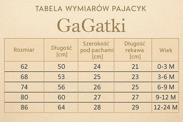 - Zapinanie: cała wysokość pajacyka